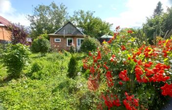 Участок 11 соток, ровный, сухой. Установлена новая теплица. Растет множество молодых плодовых и декоративных деревьев и кустарников: яблони, персики, жимолость, шарафуга, вишня, слива, рябина, виноград, черемуха виргинская, абрикос, инжир, кизил, груша, смородина, малина, павловния, туи, гортензии, различные розы, терн, шелковица. Красота и изобилие!