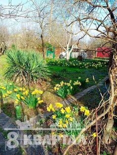 На участке очень много плодовых деревьев и кустарников, цветов.
