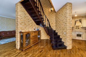 Отделка выполнена из натуральных материалов: дерево, камень, текстиль. Мебель и техника остается по договоренности.