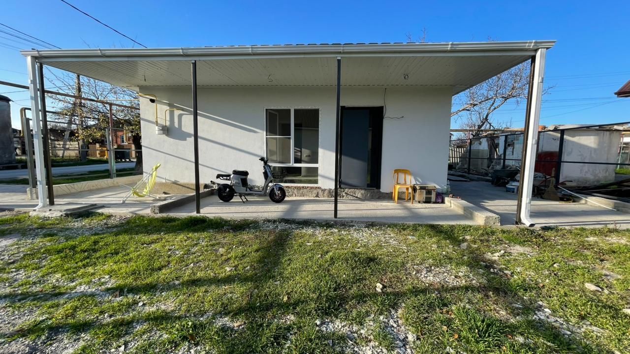 Планировка дома: две изолированные спальни, кухня-столовая с выходом на террасу, санузел совмещенный с душевой.