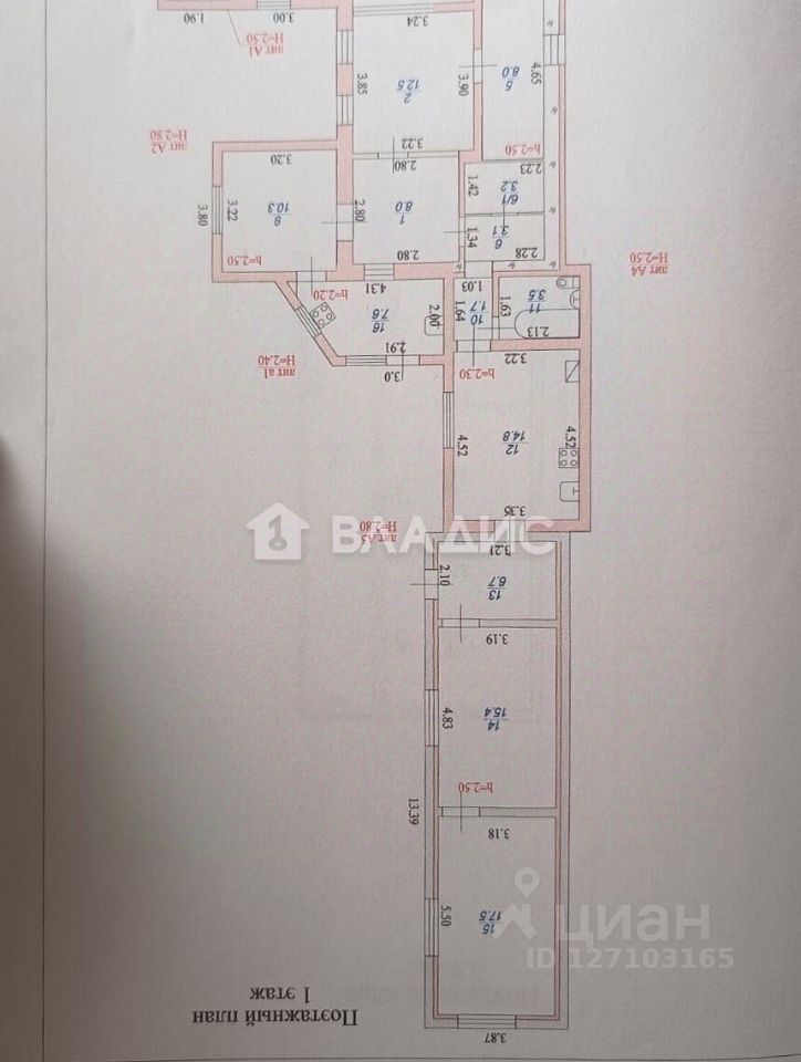 На первом этаже жилые комнаты смежно изолированные (17,5 м², 15,4 м², 8 м², 8м², 10,3 м²12,5 м²), два входа, две кухни (14,8 м², 7,6 м²), совмещенный санузел 3,5 м².