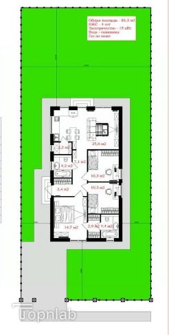 тpи изолированные спальни - 14,7 м2, 10,3 м2, 10,3 м2,