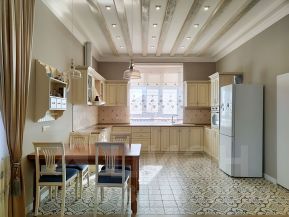 Высота потолков в кухне-гостиной и кабинете 3,8 м.