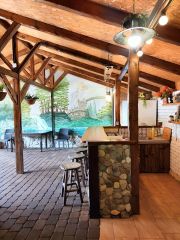 Скважина 40м, профессиональная очистка воды, видеонаблюдение, 2 отдельных септика, на участке плодовые плодоносящие деревья, альпийская горка, две беседки, одна 70кв, с барной стойкой, зоной барбекю, большим дубовым столом, вторая круглая — кальянная, гостевой дом 45м с баней, бассейн 3*6, с подогревом, необходимым оборудованием для отчистки.