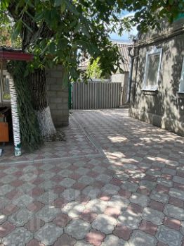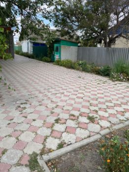 Двор выложен плиткой , есть навес .