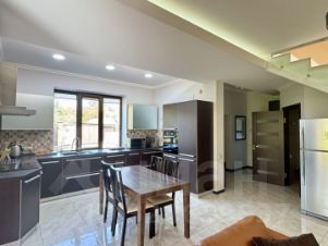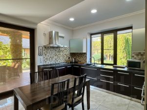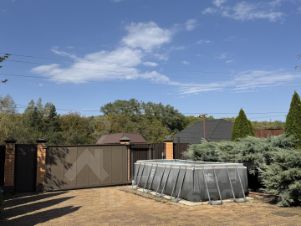 Полностью все коммуникации: газ проведен, водоснабжение скважина, в доме стоит очистная система умягчения и фильтрации воды. Видеонаблюдение и охрана (сигнализация). Откатные ворота с электро-приводом.