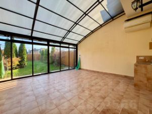 * Терраса остеклена и отапливается в зимней период, с выходом на задний двор с ландшафтным дизайном туями и газоном с автополивом, можно поставить бассейн