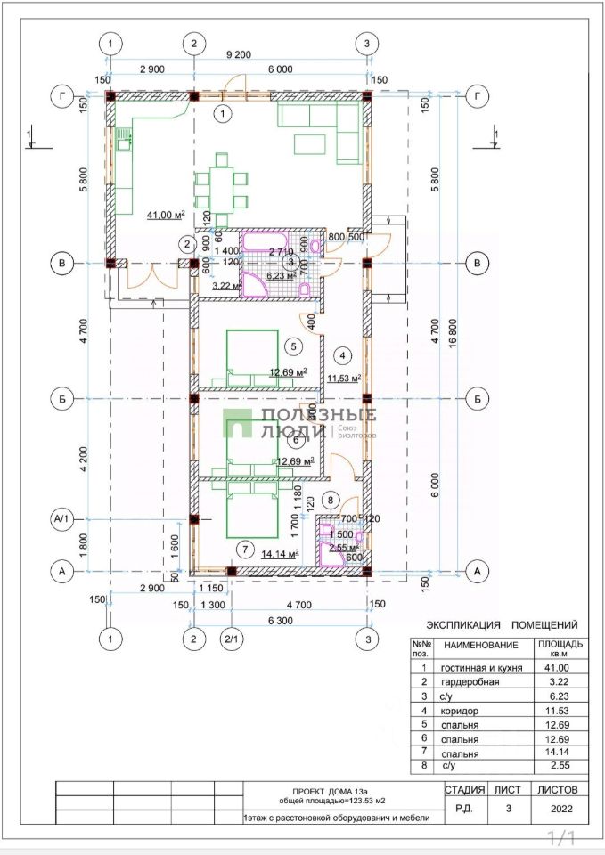 В доме 3 спальни, раздельный санузел, гардеробная комната
