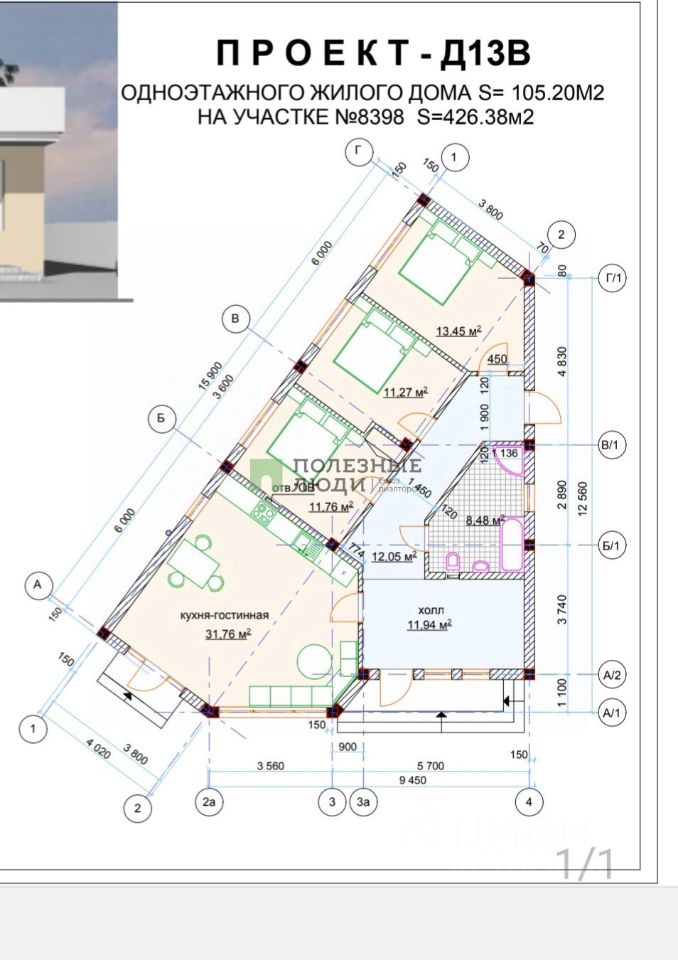 Общая площадь - 105 кв.м., 4 сотки земли.