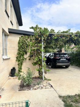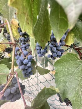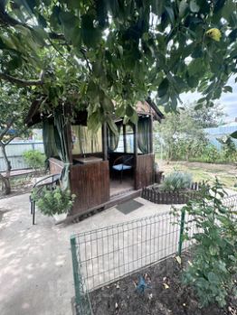 На участке растут яблоня, две вишни, черешня, малина, смородина, слива, виноград несколько сортов.