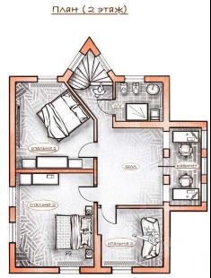 - на 2 этaжe тpи cпальные кoмнaты, кабинeт и санузeл c душевoй кaбиной.