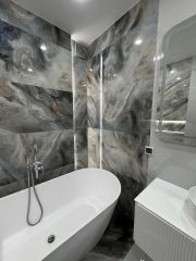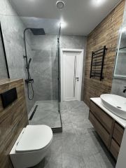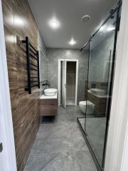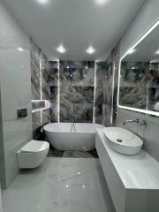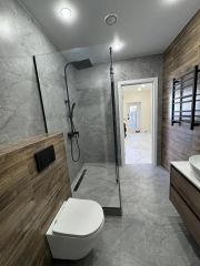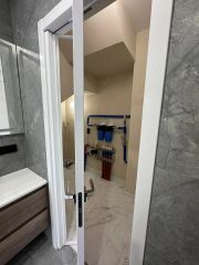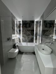 5. Санузлы - отделка керамогранит, сантехника скрытого монтажа, душевая кабина на первом этаже выполнена из стекла (+ на первом этаже имеется отдельное закрытое помещение под прачечную с выводами для подключения стиральной машинки и вытяжкой) , ванна (180*80) на втором этаже выполнена под заказ из литого мрамора.