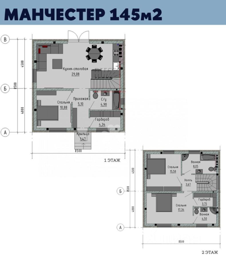 В доме на 1 этаже спальня, сан.узел, гардеробная, просторная кухня-гостинная с выходом на большую террасу, на 2-м этаже две мастер спальни, с гардеробом.