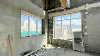 Внутри дома черновая отделка, установлены пластиковые окна,