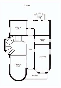 3 комнаты и два балкона. Есть еще мансардное помещение 100 м2.