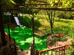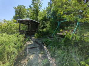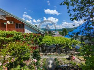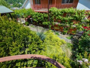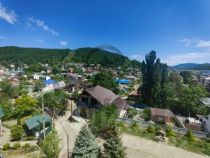 Чудесный вид на поселок и горы . Территория облагорожена, утопает в зелени и экзотических деревьях, розарий, виноградник, большое количество фруктовых деревьев ( инжир, яблони, черешня, вишня )