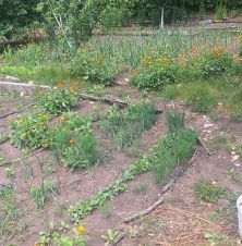 Много цветов : розы, лилии, юка, мелисса, мята.
