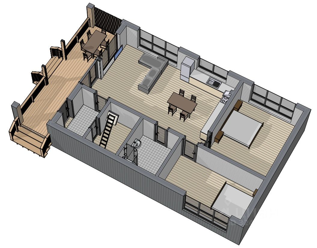 - Широкая терраса — ваше личное пространство для утренних кофе, семейных завтраков на свежем воздухе и вечерних посиделок под звёздным небом.