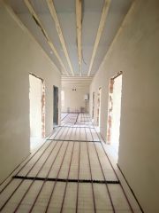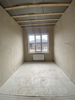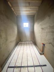 В доме выполнена предчистовая отделка:разводка по электричеству, стены оштукатуренные, механизированная стяжка пола, в комнатах установлены радиаторы отопления, мультифункциональный стеклопакет в остеклении ,установлен современный двух контурный котел отопления.