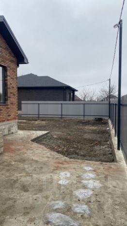 По периметру участок огорожен забором,по фасаду откатные ворота,калитка .