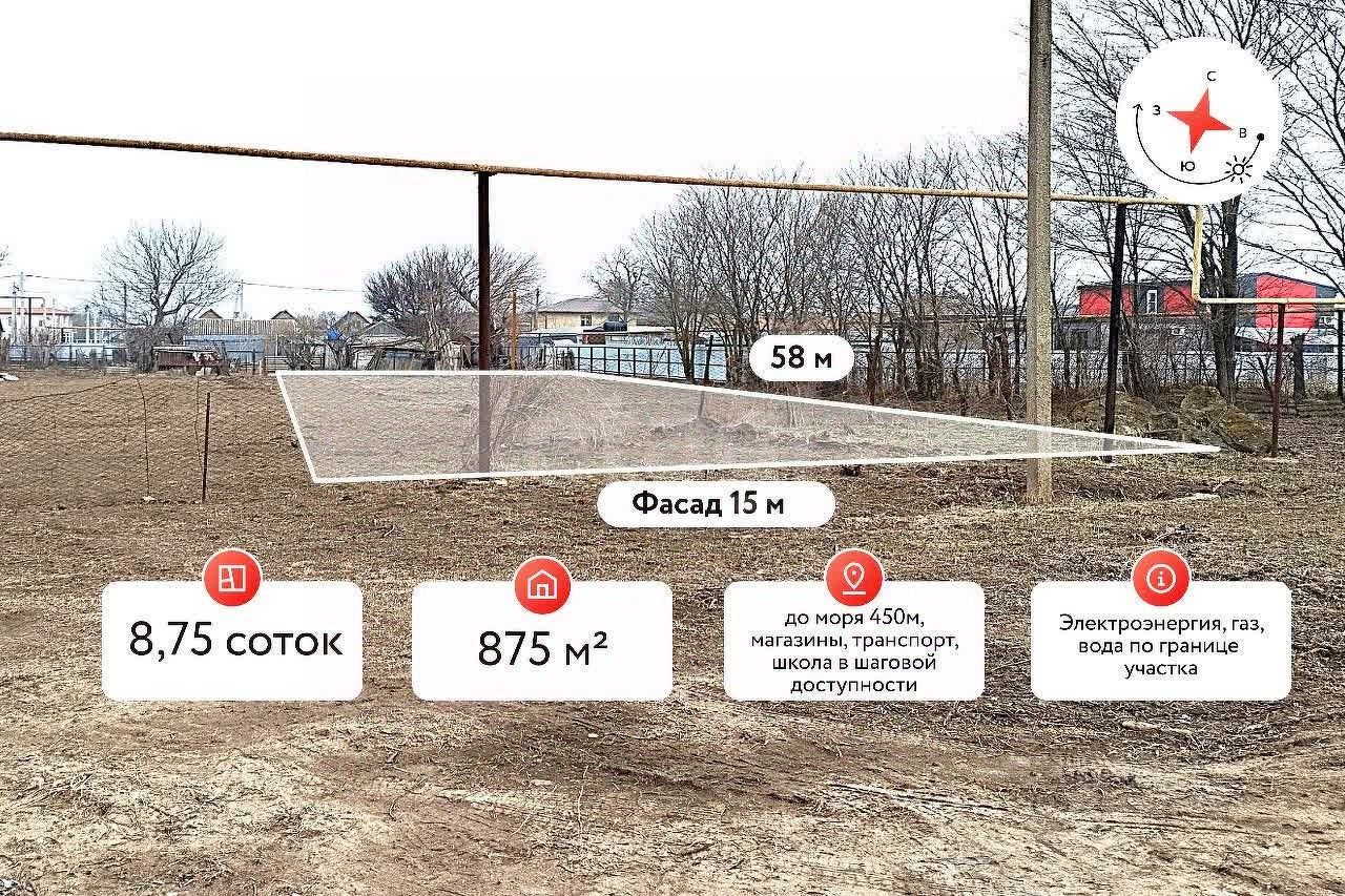 Сформированный подъезд с грунтовой дороги и просторная площадка позволяют без труда разместить несколько автомобилей. Инфраструктура поселка развита и находится в шаговой доступности: в нескольких минутах ходьбы расположены школа, детский сад, поликлиника, сетевые магазины, бювет с минеральной водой, спортивный комплекс и храм. Главная курортная ценность — морское побережье — находится всего в 10 минутах неспешной прогулки. Этот участок представляет собой готовый фундамент для жизни у моря в обжитом и динамично развивающемся населенном пункте.