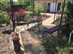 Основное жилое здание из керченского камня площадью 50 кв.м. имеет две спальни, кухню-столовую и прихожую.