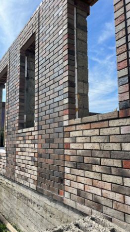 керамзитобетонный блок, облицовка - кирпич, утеплен, кровля металлочерепица.