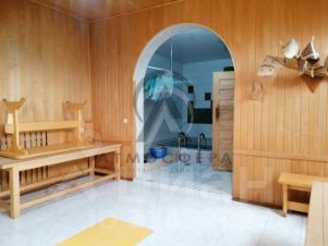 Отдельно на участке кирпичная сауна, в которой имеется парная, зона отдыха и бассейн. На цокольном этаже сауны расположен подвал и погреб (цокольный этаж с отоплением).