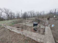 На территории уже есть начатое капитальное строительство: фундамент под дом 10х14 метров выполнен по ленточной технологии шириной 50 см и обработан специализированным укрепляющим составом, применяемым в мостостроении, что свидетельствует о значительном запасе прочности и серьезном подходе. Также залит отдельный фундамент 7х6 метров под летнюю кухню или гостевой дом.