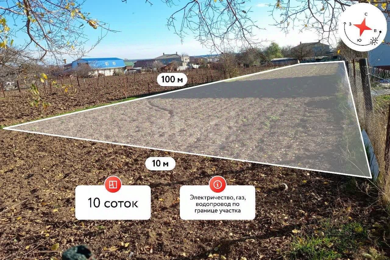 Продается земельный участок площадью 10 соток в станице Тамань. Участок имеет удобную вытянутую форму с фасадом 10 метров и глубиной 50 метров, что позволяет рационально разместить жилой дом с приватной зоной.