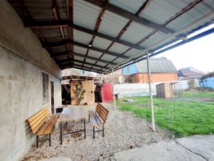 Дом предусмотрительно расположен в задней части двора, что бы была возможность на большой свободной части участка построить полноформатный дом.