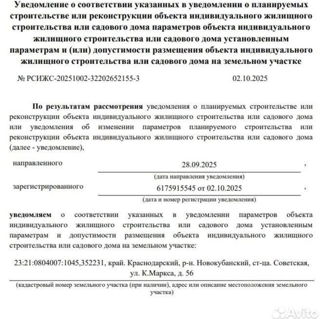Коммуникации по меже. Участок свободен от построек. Фасад 19 метров.