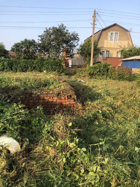 На участке выложен фундамент под дом 50 м2, а так же есть 7-ми метровые плиты перекрытия-4шт (отдельно 30т.р. каждая стоит, они остаются в подарок), имеется яма под септик, возможно подключить 15 кв. свет. Так же на участке плодовые деревья.