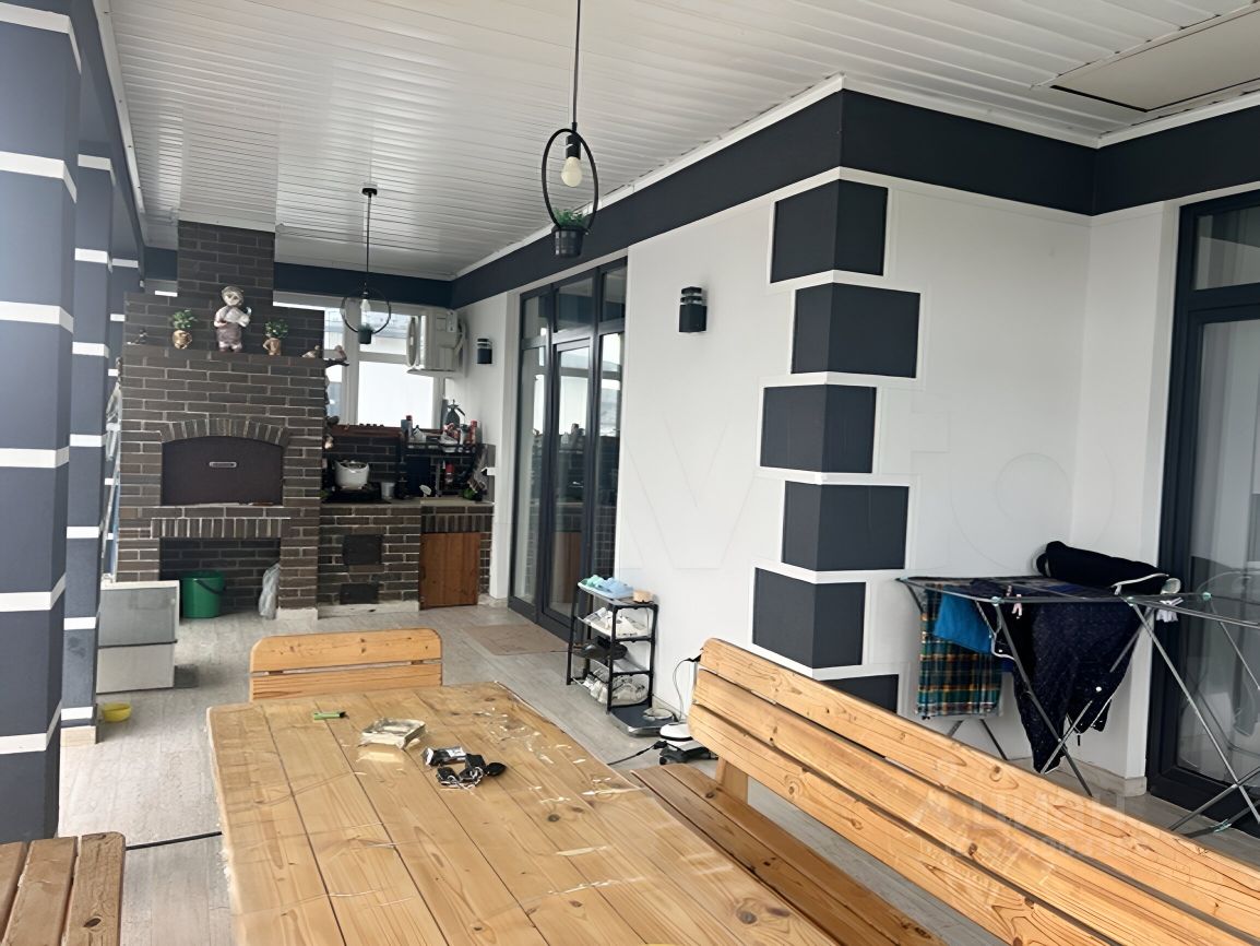 - cтильная кухня-гoстиннaя c выхoдом нa зaкpытую тeppaсу