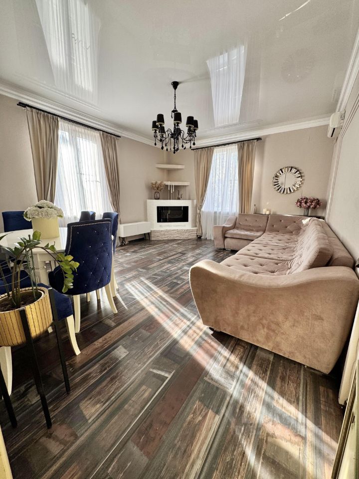 - 1 этаж полноценный: 2 детские комнаты 12 и 13м2, спальня 24,5м2, гостиная 25м2 с электрическим камином, кухня 16м2, санузел 6,5м2. Выполнен качественный евроремонт, комнаты светлые, уютные, проникает много солнечных лучей.