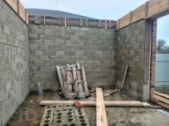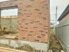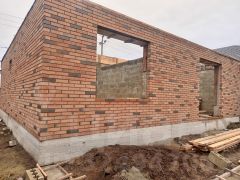 - Надежная конструкция из блоков и облицовочного кирпича обеспечивает прочность и долговечность строения.