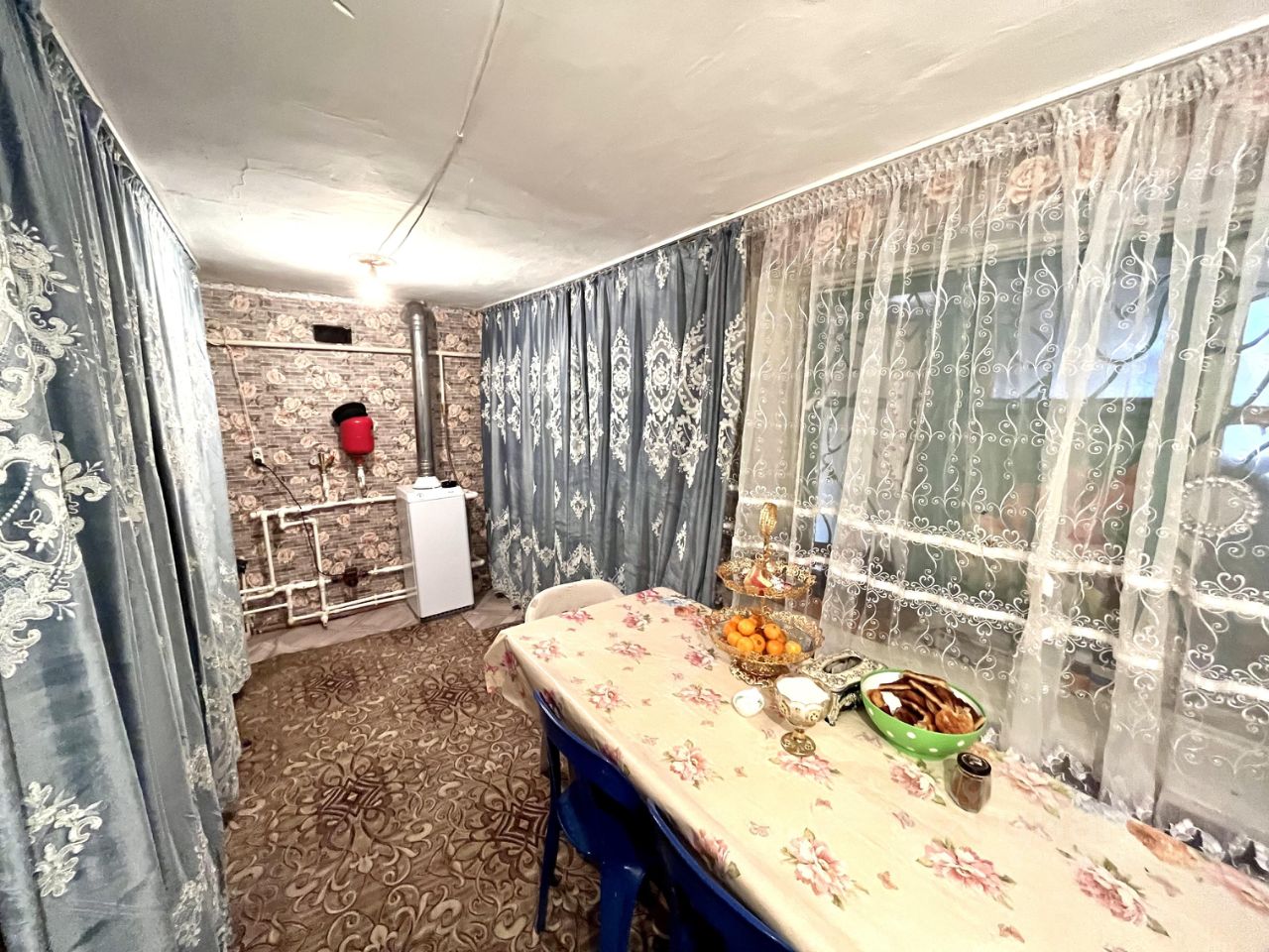 В доме три комнаты, кухня, совмещенный санузел. Подключены все коммуникации, отопление газовый котел.