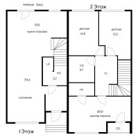Второй этаж: 2 детские комнаты, санузел, мастер-спальня со своим санузлом и выходом на балкон