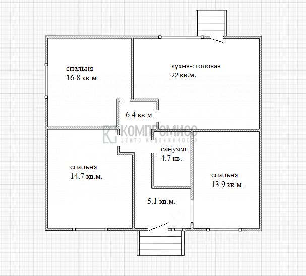 Общая площадь- 86 кв.м. Высокий конёк, возможность мансардного этажа.