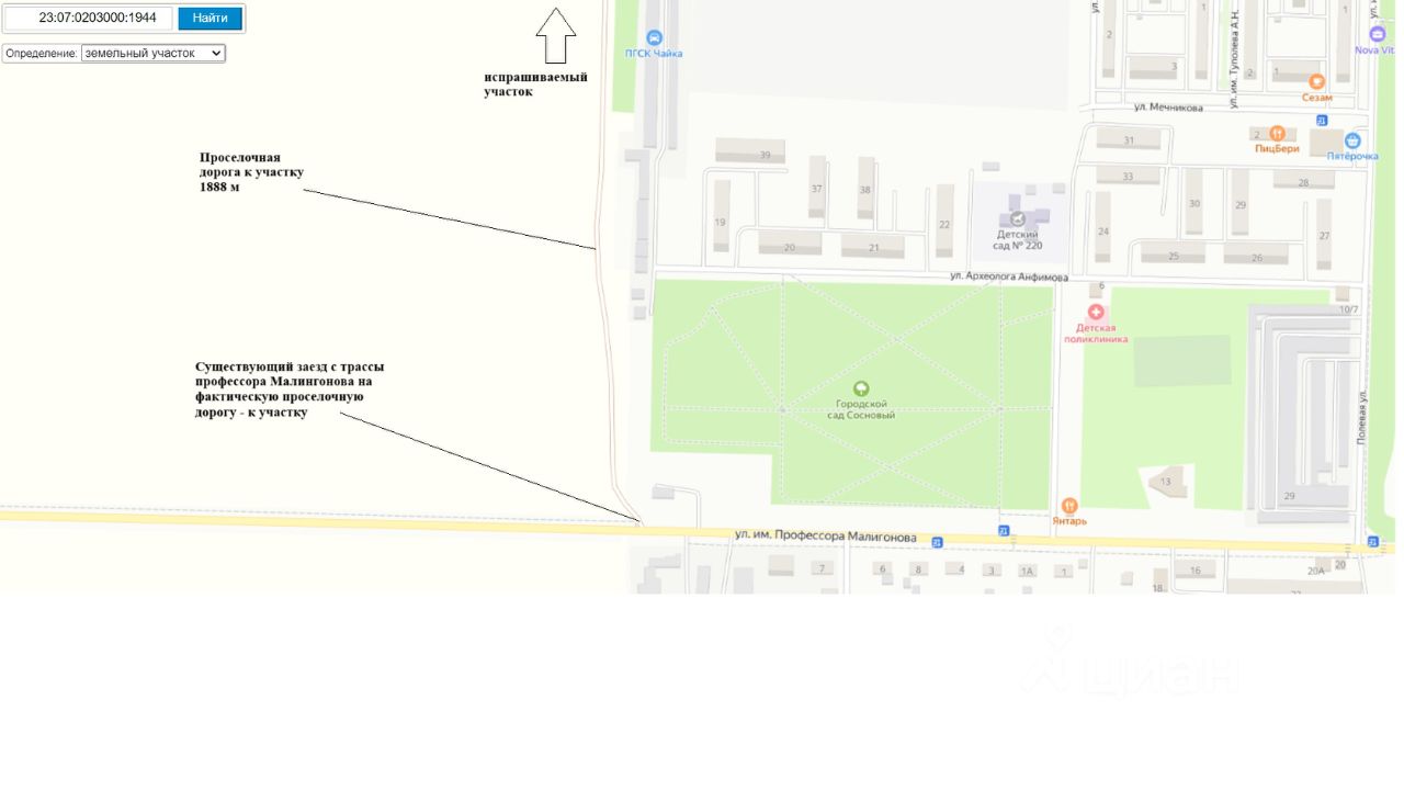 Заезд г. Краснодар, п. Березовый, ул. им. Профессора Малигонова, д. 3 Городской сад сосновый.