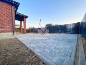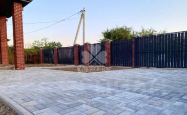Во дворе тротуарная плитка, фасад откатные ворота.