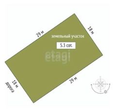 Участок ровный площадью 5,3 соток имеет правильную прямоугольную форму.