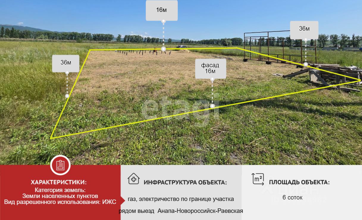 Площадь участка — 6 соток. Он расположен в удачном районе, рядом с газифицированным коттеджным посёлком Южные луга.