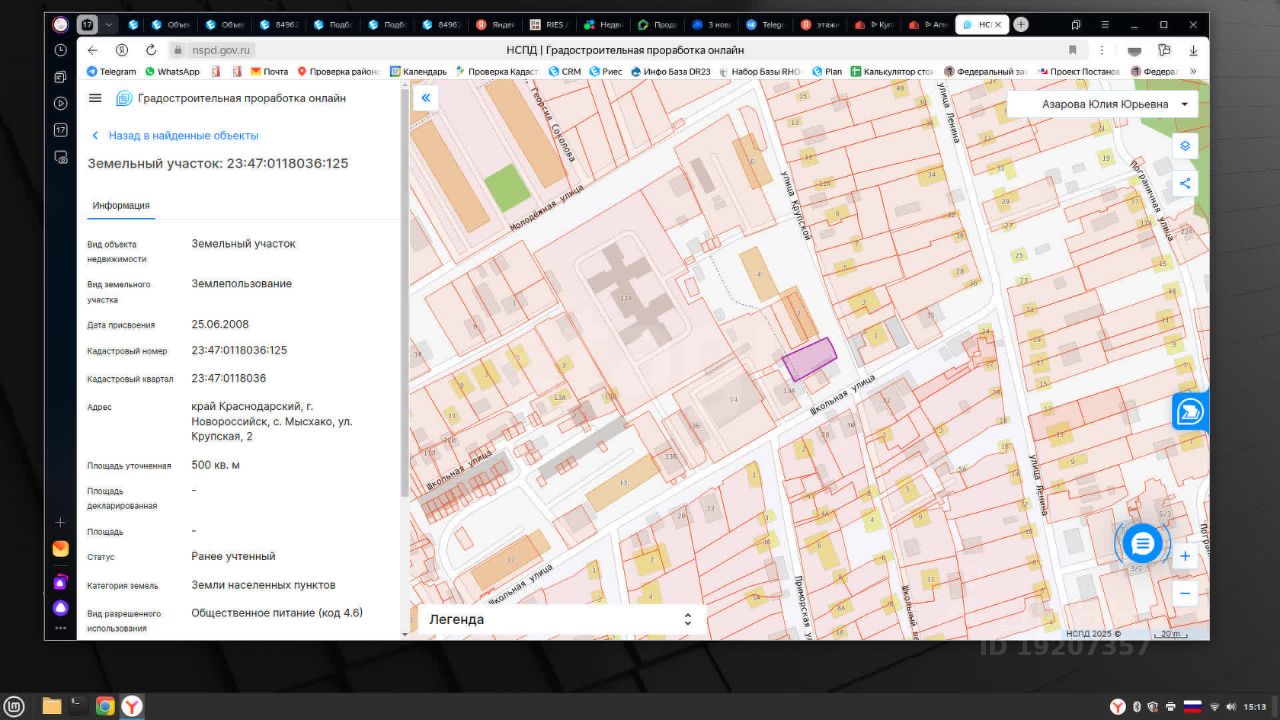 Вид разрешенного использования (ВРИ): 'Общественное питание'. Под строительство кафе, ресторана, столовой, летнего кафе.