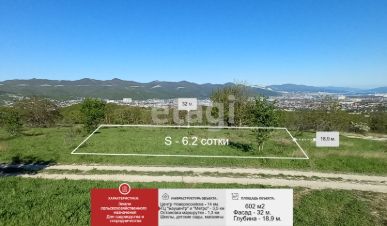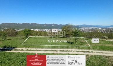 Участок почти ровный, с небольшим уклоном, с панорамным видом на весь Новороссийск и бухту.