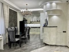 • Гостиная и столовая объединены с кухней, создавая единое пространство для семейных встреч и праздников.