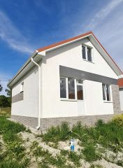 Практичная планировка: в доме предусмотрены три спальни, кухня-гостиная с выходом на террасу и совмещенный санузел. Пространство спроектировано удобно и функционально для семейного проживания.