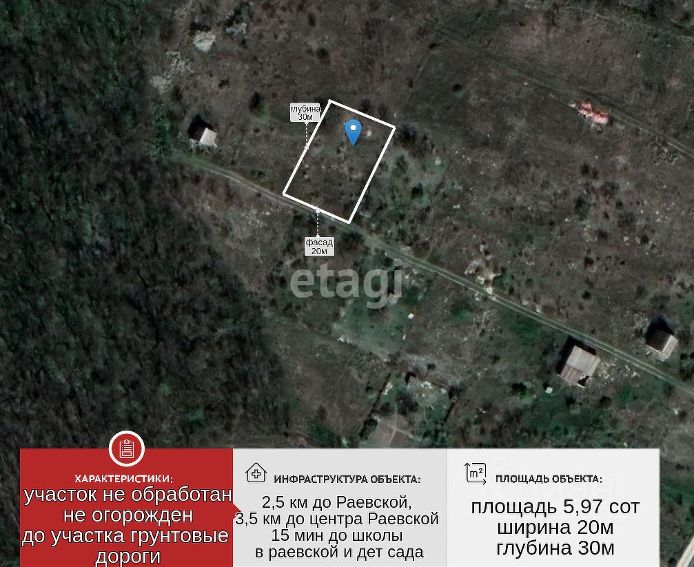 Участок правильной прямоугольной формы, без уклона, находится рядом с самой развитой станице Новороссийска с точки зрения инфраструктуры.