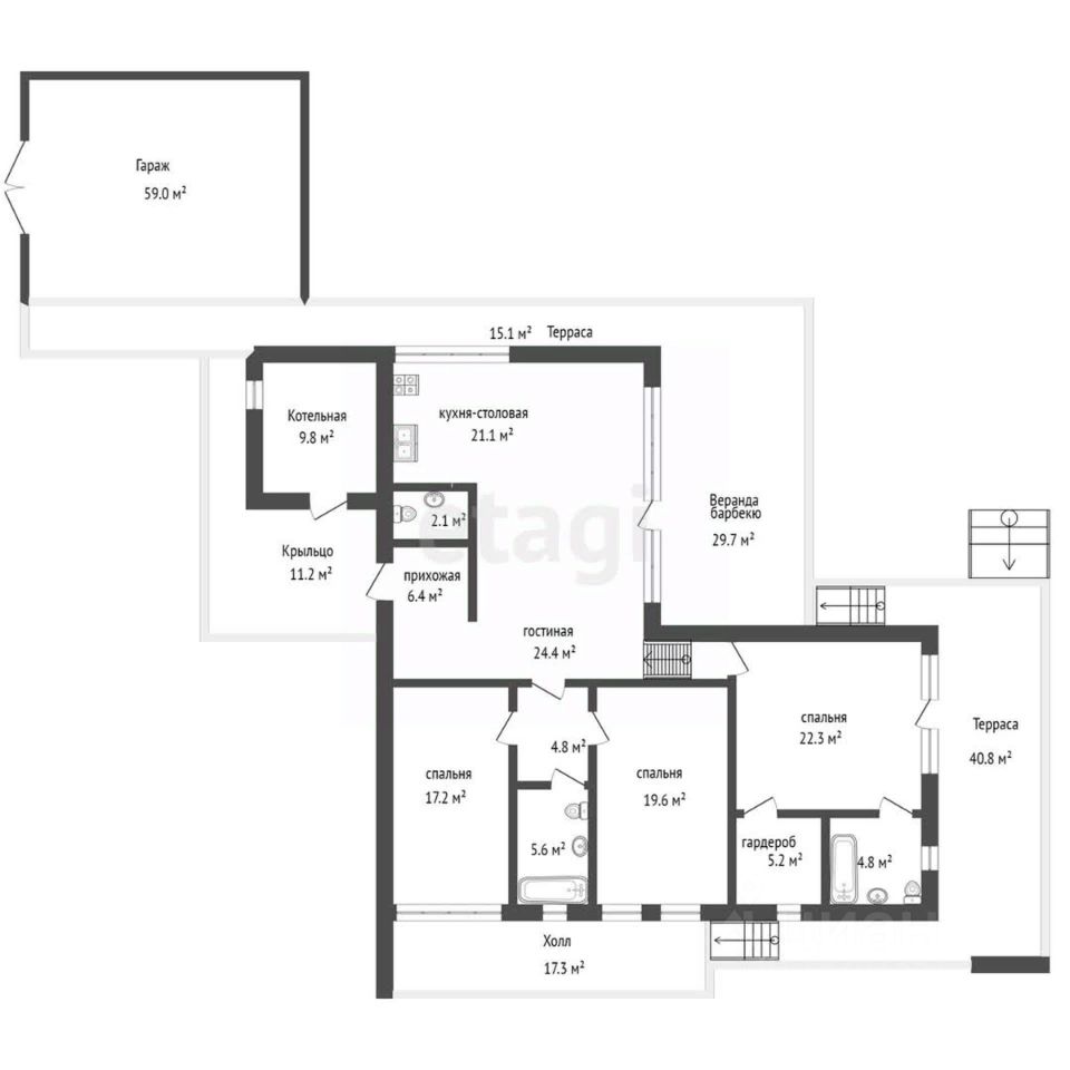 Общая площадь 316,4 м2, три просторные террасы с потрясающими видами и оборудованная зона барбекю (терраса1-15,1м2, зона барбекю-29,7м2, терраса2-40,8м2, холл-терраса3-17,3м2) и всё это на 10 сотках с озеленением и оборудованным авто-поливом и крытой парковкой 59м2