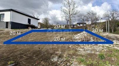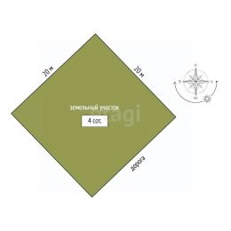 Земельный участок площадью 4 сотки имеет правильную прямоугольную форму и ровный рельеф, предоставляя возможности для ландшафтного дизайна, садоводства или размещения зоны отдыха.